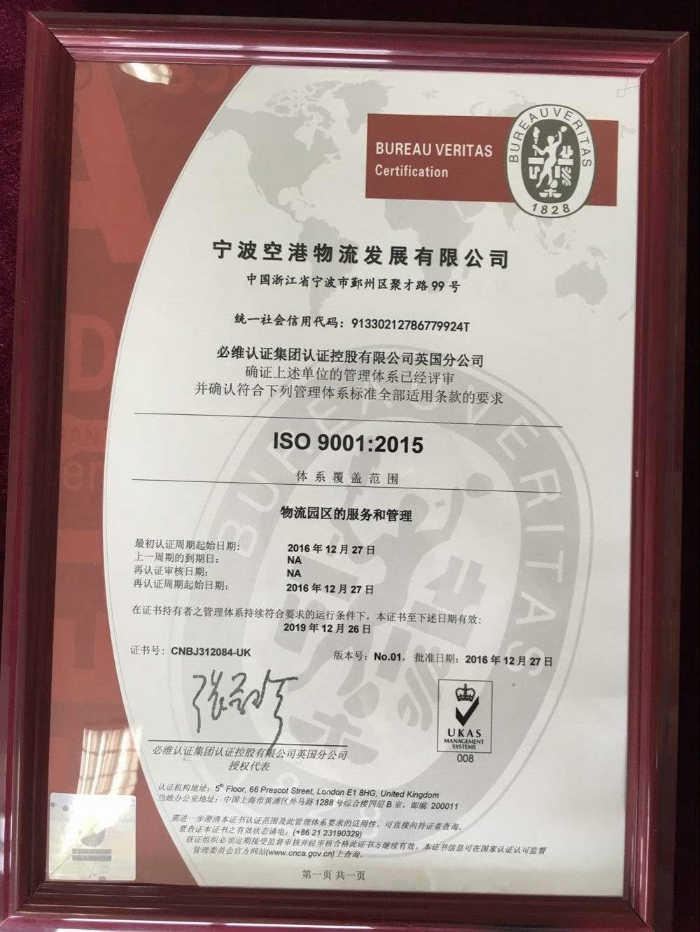 ISO2015英文證書