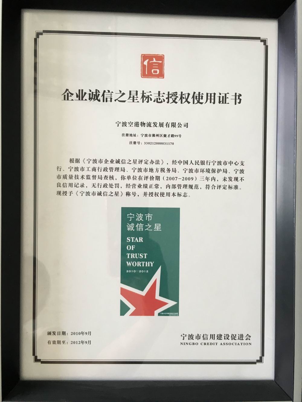 企業(yè)誠信之星授權使用證書